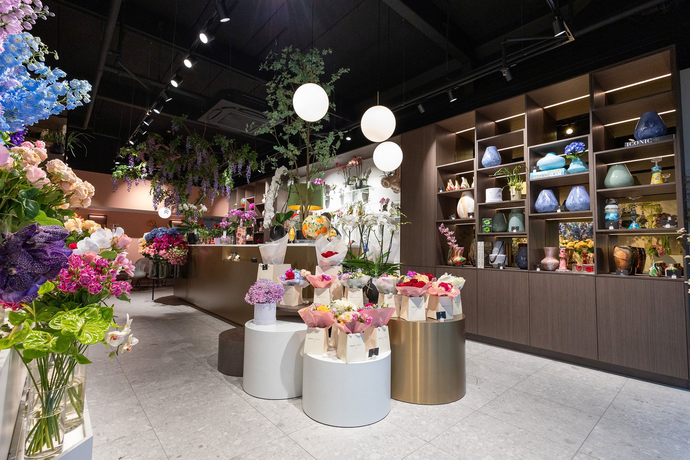 The pop-up evolves into a full-service flower boutique, offering daily-fresh hand-tied bouquets, long-life preserved roses and carefully curated floral accessories. Located in one of the city's most elegant retail centres, this space becomes a destination for customers seeking refined gifts and inspiration.